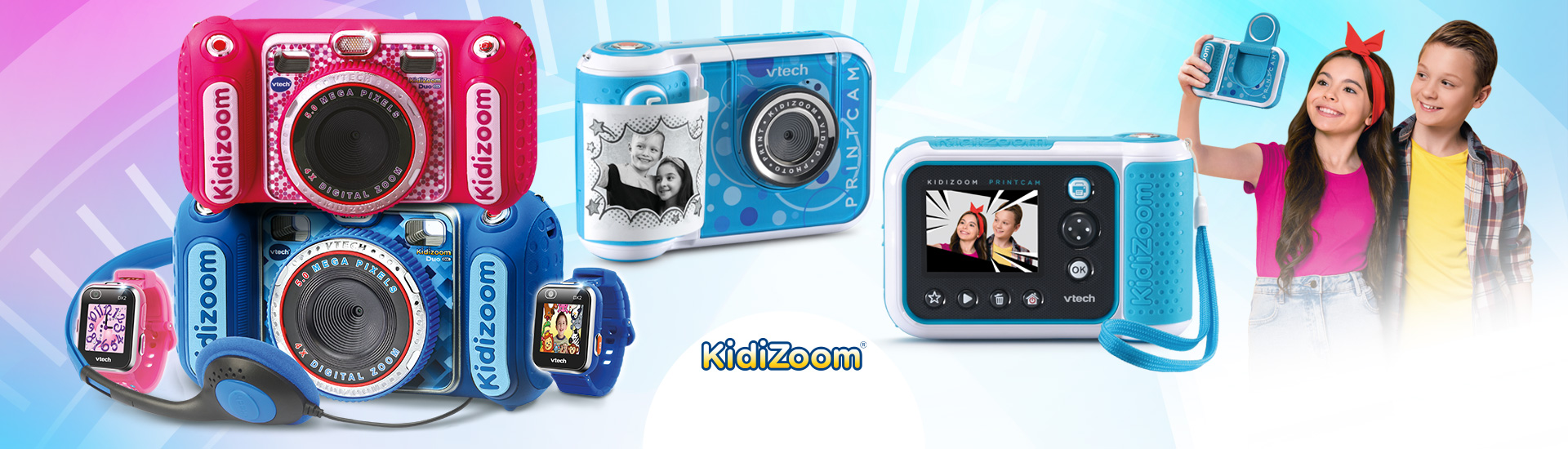 Progettata appositamente per i bambini dai 3 anni (e fino ai 10 anni) le macchine fotografiche KidiZoom sono ricche di funzionalità! Foto, video, rilevamento del volto, distorsione vocale, giochi... e tanto altro! Sono il regalo ideale per apprendisti fotografi!