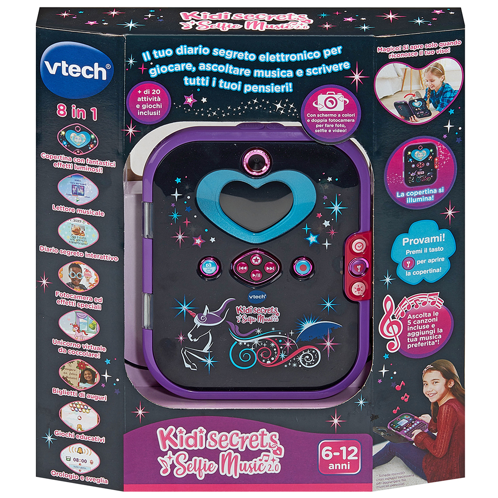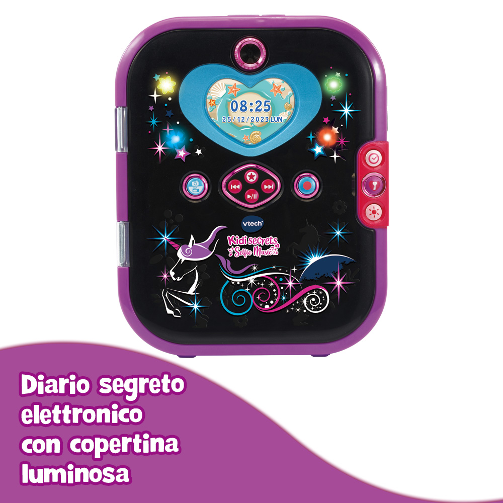 Magico! Il diario segreto elettronico Kidi Secrets Selfie Music 2.0 si apre solo quando riconosce il tuo viso! I tuoi segreti sono sempre al sicuro! (è possibile impostare anche un codice a 4 cifre).