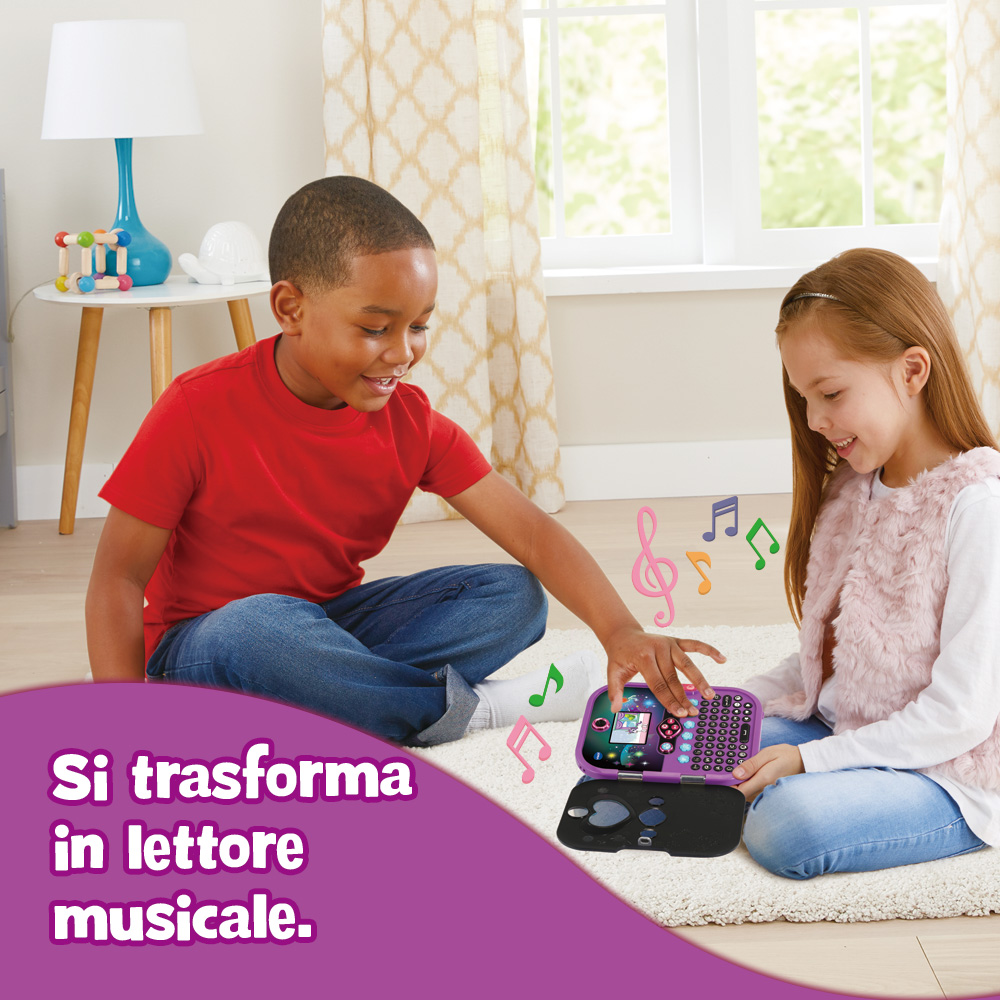 Lettore musicale: per ascoltare i 5 brani inclusi e aggiungere la tua musica preferita (scheda microSD non inclusa necessaria per l'aggiunta di file musicali personali).