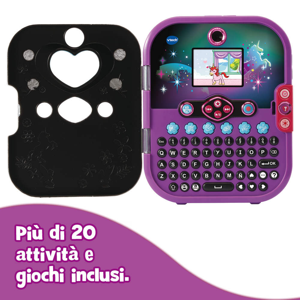 All'interno del diario segreto c'è un intero universo pieno di giochi super divertenti! Scopri e conosci un grazioso unicorno virtuale di cui prenderti cura, un diario per scrivere tutti i tuoi segreti, una macchina fotografica con dei magici effetti, graziosi biglietti di auguri e molto altro ancora! Con la funzione Music Player puoi ascoltare le tue canzoni preferite!