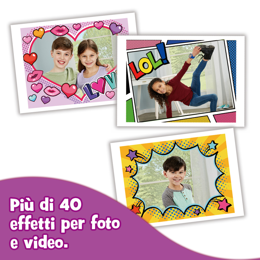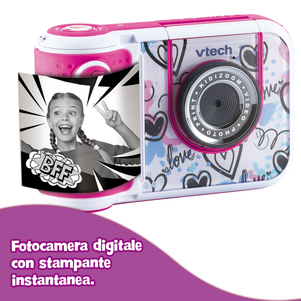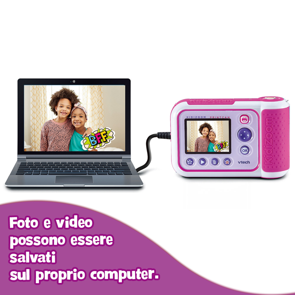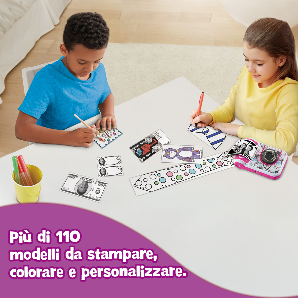 • Scattare foto e realizzare video non è mai stato così semplice! Diversi formati di stampa e diverse modalità di gioco per stimolare la creatività: foto normali e panoramiche,  selfie, video, giochi e fotoritocchi!