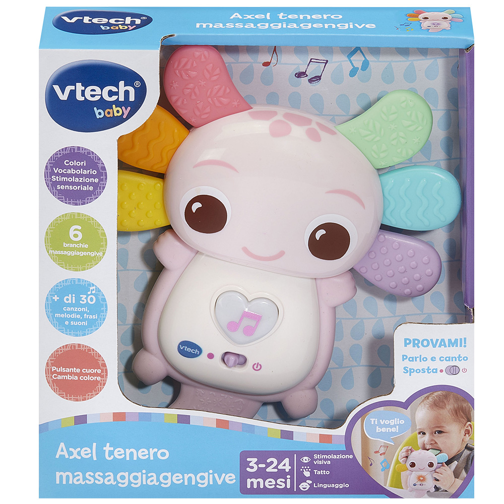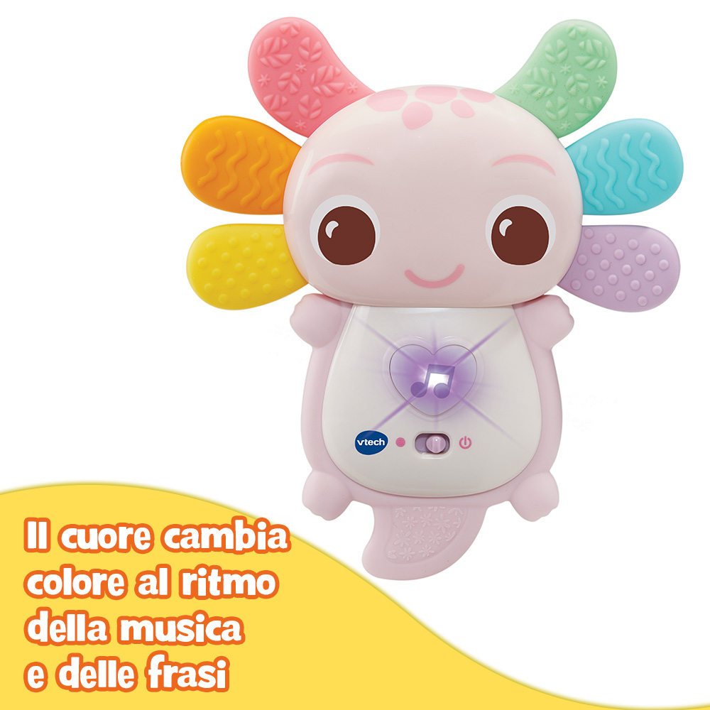 Un simpatico axolotl canterino che accompagna il bambino nelle sue prime scoperte!
