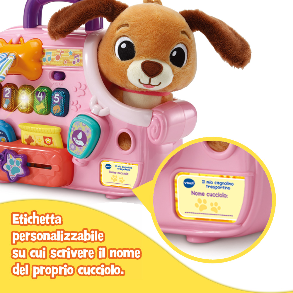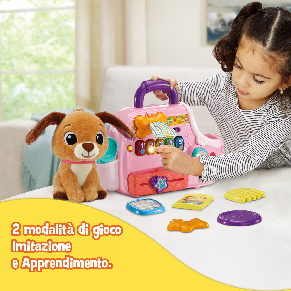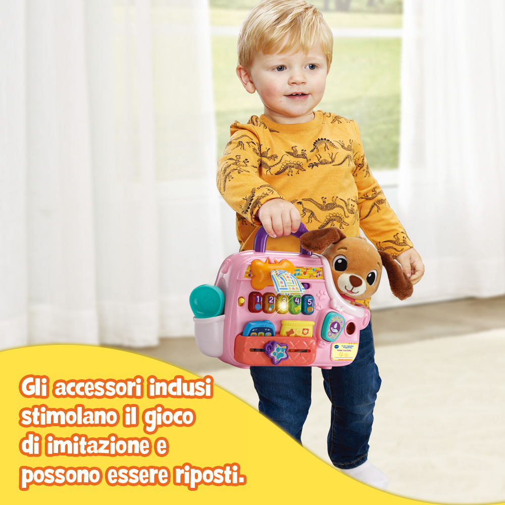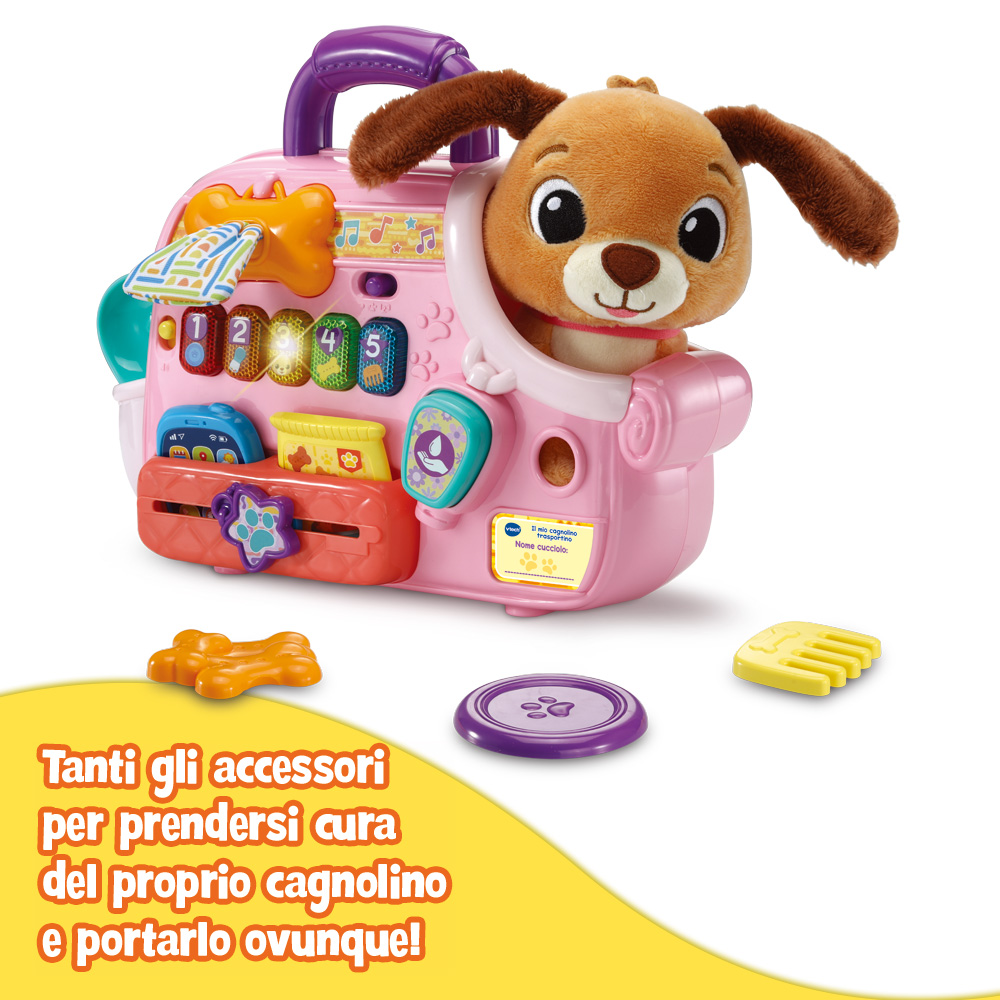 il bambino potrà prendersi cura del suo adorabile cagnolino di peluche ovunque