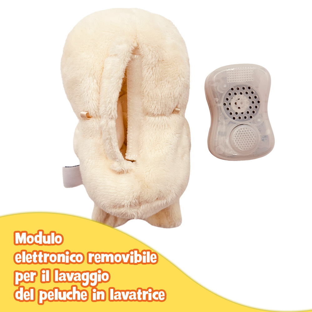 • Il modulo elettronico removibile consente di lavare il peluche in lavatrice.