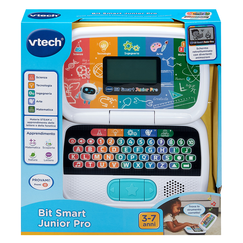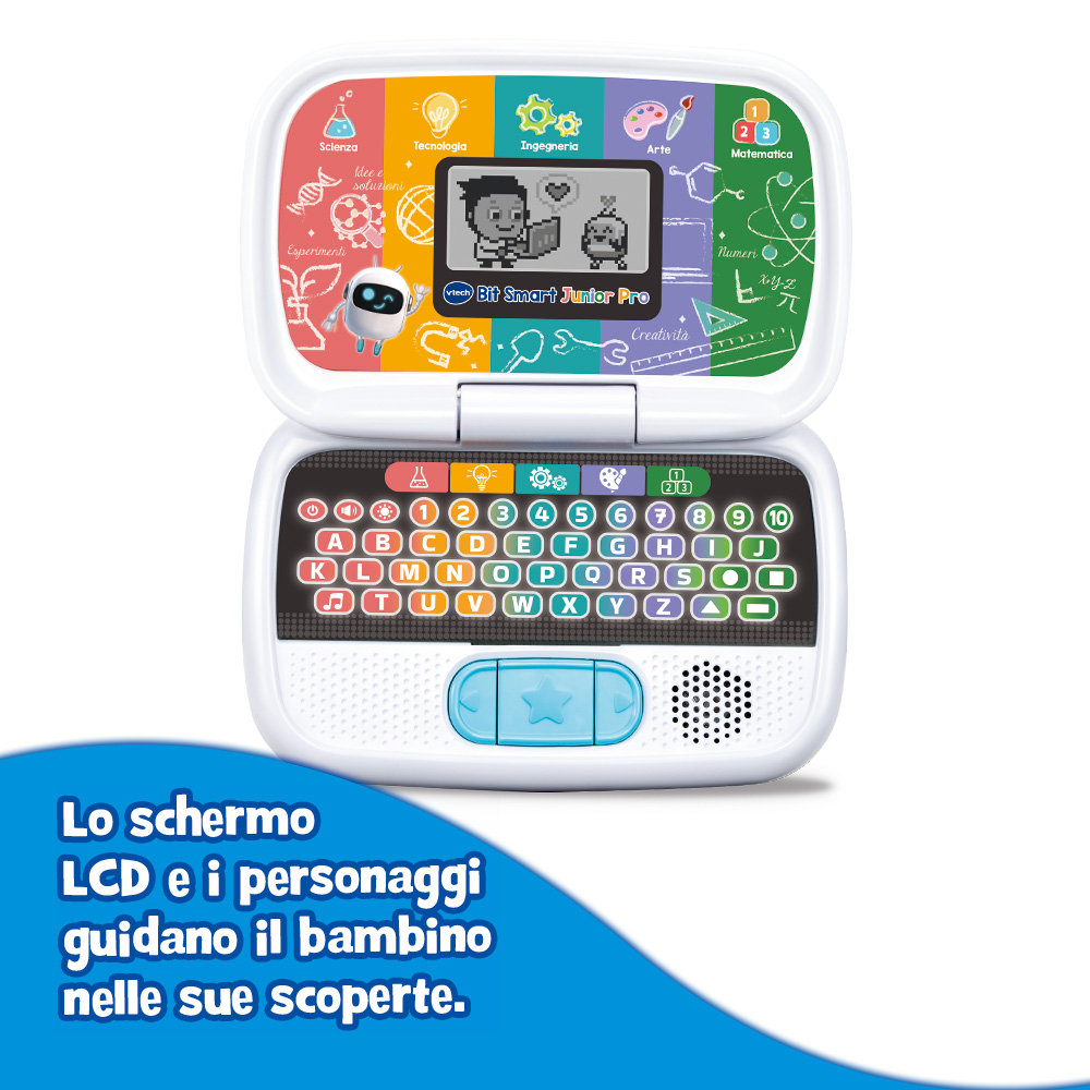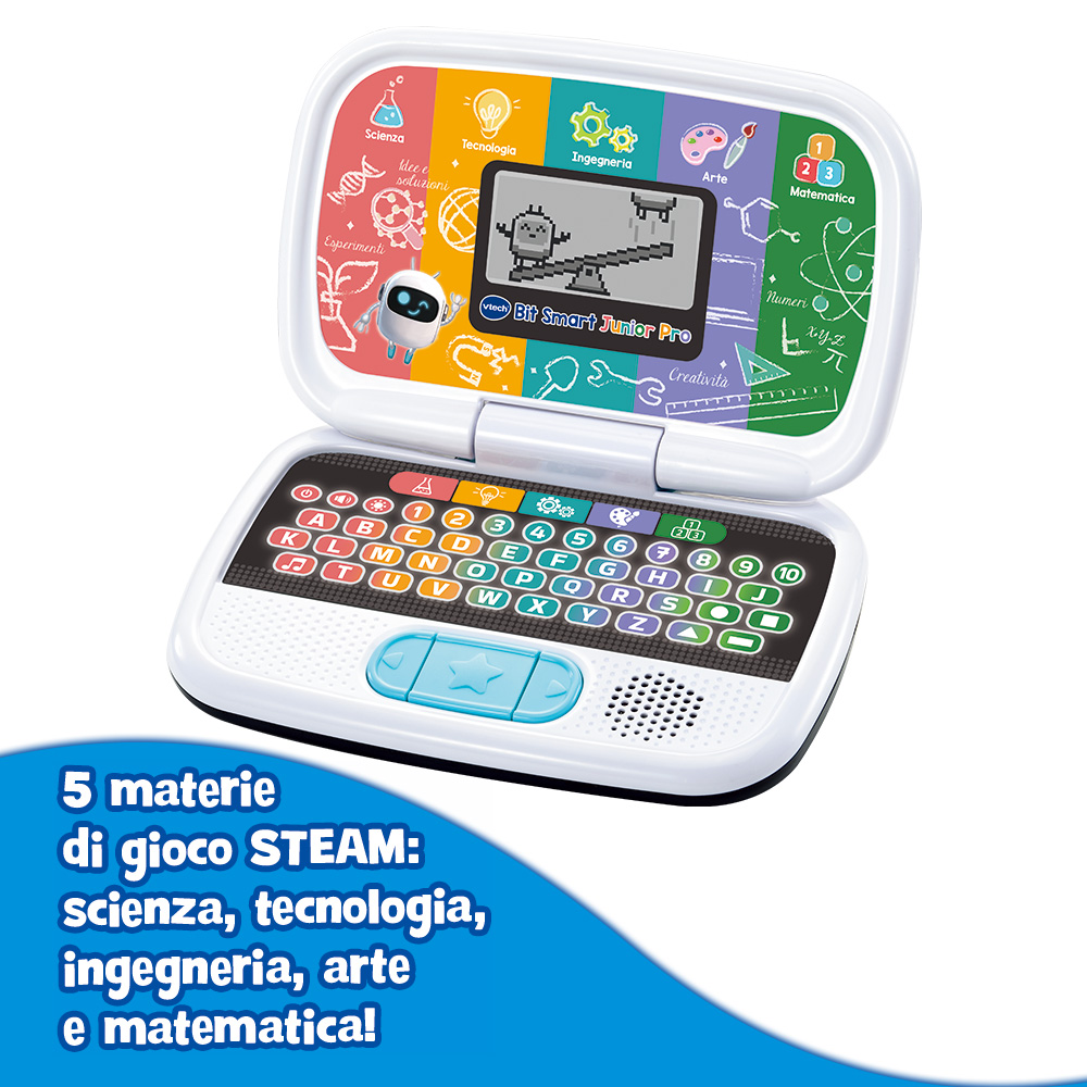 Un computer educativo interattivo pensato per accompagnare i bambini dai 3 ai 7 anni nell’esplorazione delle materie fondamentali: scienze, matematica, tecnologia, ingegneria e arte. Grazie ai suoi numerosi giochi ludico-educativi, stimola la logica, la creatività e la curiosità, trasformando l’apprendimento in un’avventura divertente.